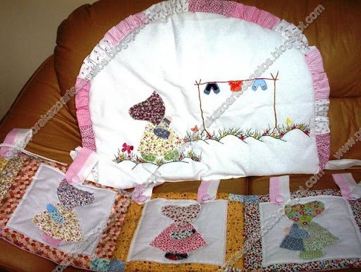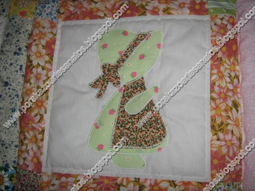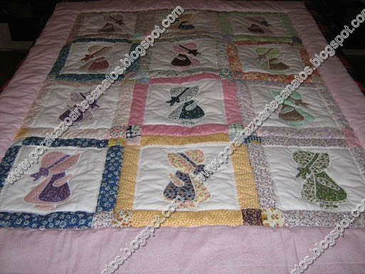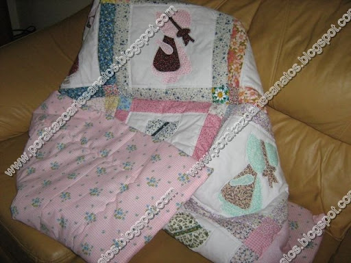 Esta é uma colcha que foi confeccionada para cama de uma noiva, na qual eu utilizei as "menininhas e menininhos escondidinhos para edredon de berço". Esse tema também faz sucesso para colchas de adultos.