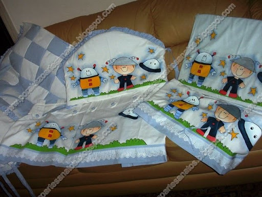 Isto eu faço nas horas vagas. Quando tenho tempo aceito até encomendas, mas preciso de inspiração. São vários motivos de acordo com o sexo do bebê.