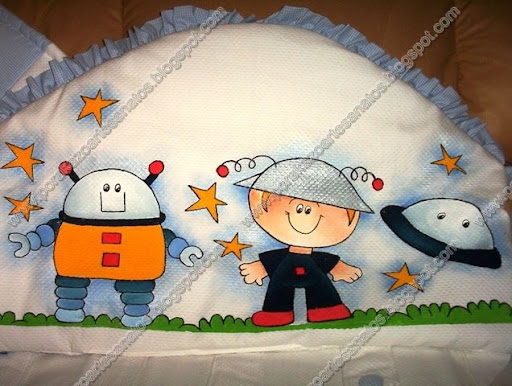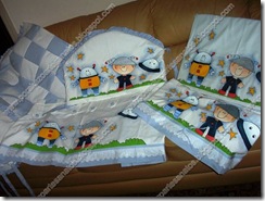 Este conjunto foi confeccionado por mim mas quem pintou foi a Juraci, porque era para o netinho dela.