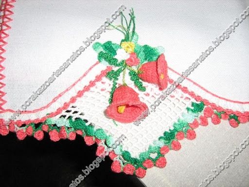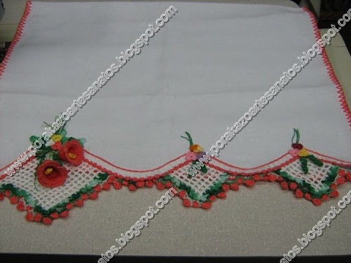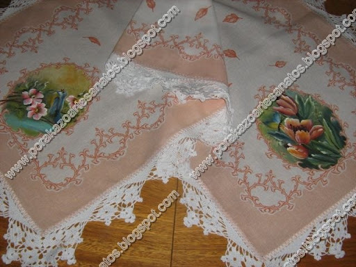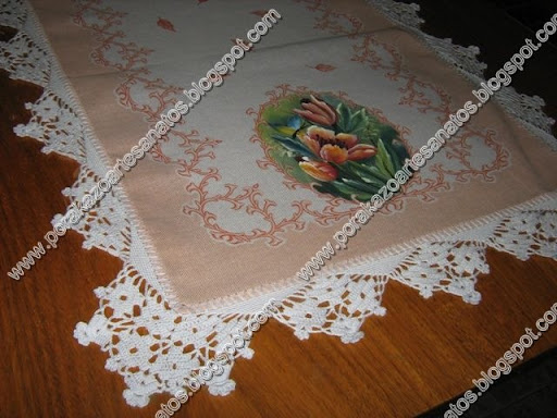O caminho de mesa eu pintei e fiz o crochêt também. A Marilda vai ficar orgulhosa de mim...