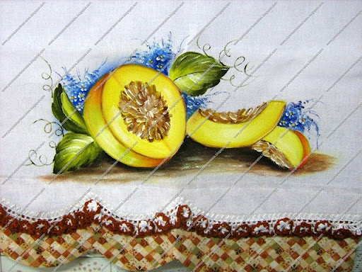 O pano de prato eu fiz e, o crochêt e a pintura, é da Mirinéia.